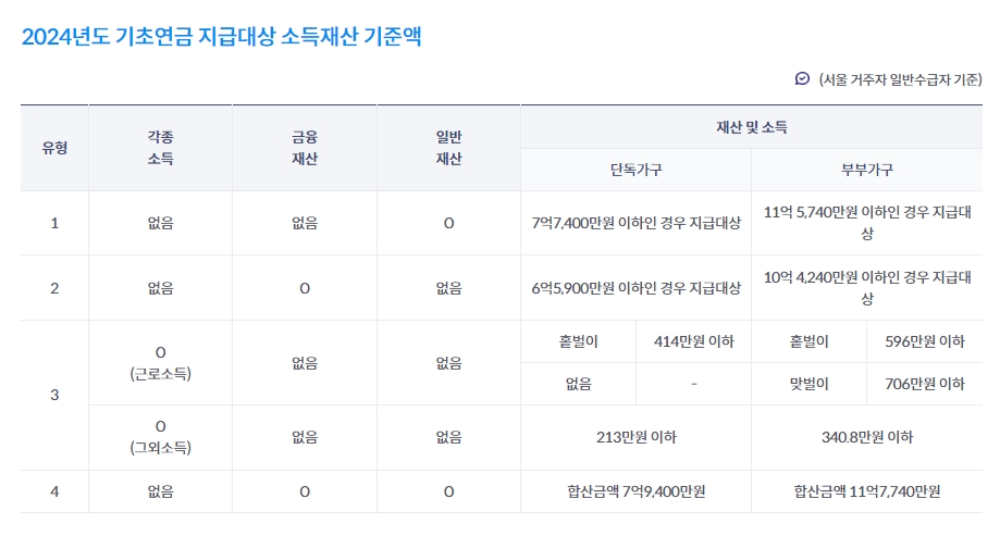 - 연금수급자(단독가구) 213만 원 이하, (부부가구) 이하이면 신청 가능합니다